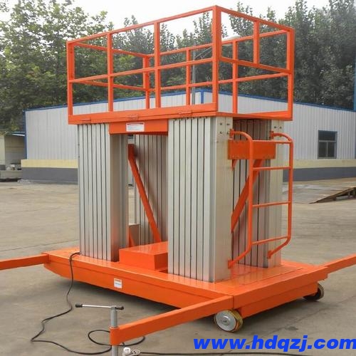 3、鋁合金升降機(jī)工作時(shí),嚴(yán)禁在工作平臺(tái)上作人為搖晃。